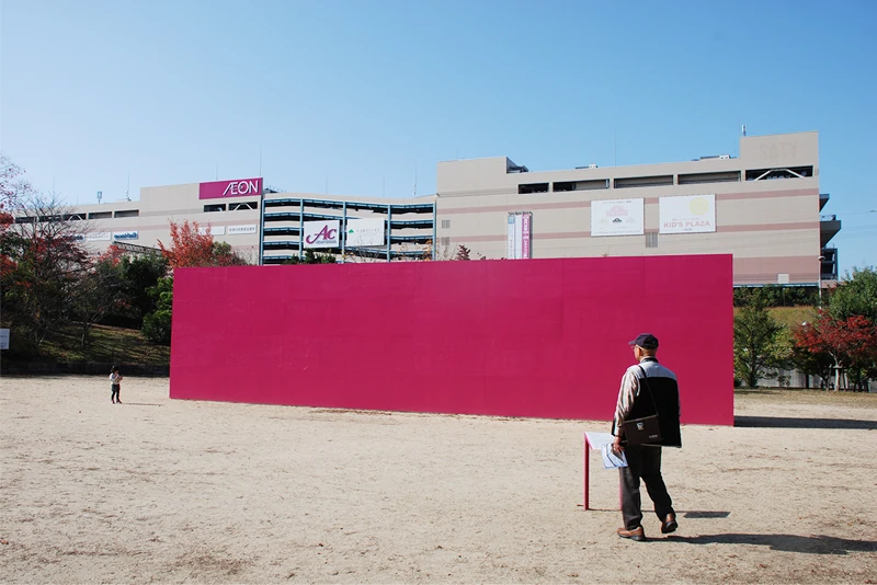 展示中、プロジェクションマッピングにて3分の映像を流す。ラストシーンで巨大ショッピングモールのマークを投影した。近鉄の線路を挟み、ショッピングモールの看板と投影された看板が向き合った。百年の邂逅…百年もの間、私たちは風土とどう向き合ってきたのか。今後も進む都市化の中で次の百年が心配だ。これから私たちは一体どこへ進んでいくのだろうか。